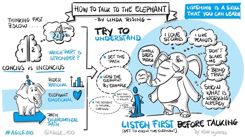 Einen, gerade in der heutigen Zeit und aus amerikanischer Sicht, sehr wichtigen Vortrag gab es von Linda Rising. Aufgrund der politischen Lage im Land, ist Linda nicht nur in einer non-profit tätig, welche versucht die politischen Lager wieder näher aneinander zu bringen, sondern sie schilderte auch ihren Weg zu mehr Verständnis.Mit „How to talk to the Elephant“, fand Linda beim Juni Event (Recap) eine passende Metapher für das systemische Denken, welches vor allem durch einen Daniel Kahneman („Schnelles Denken, langsames Denken) bekannt gemacht wurde. Die ruhige Erzählweise, die vielen Einblicke aus ihrem Leben und eine erfrischende Ehrlichkeit machten diesen Vortrag zu einer ganz besonderen Session, die vielen Zuhörern aus der Seele sprach. Aber schaut ihn euch selber an und lernt mehr über System 1, System 2 und vor allem Elefanten kennen. 😉