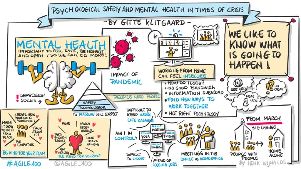 Genauer gesagt ging es Gitte bei „Psychological safety and mental health in times of crisis“ vor allem darum, dass mentale Gesundheit etwas für alle Menschen ist. Nicht nur für diejenigen, die bereits mentale Auswirkungen spüren. Themen wie soziale Verantwortung, offene Kommunikation und das Erlauben von Fehlern wurden dabei ebenso angesprochen wie Möglichkeiten einer gesünderen Kommunikation auf den verschiedenen Ebenen.