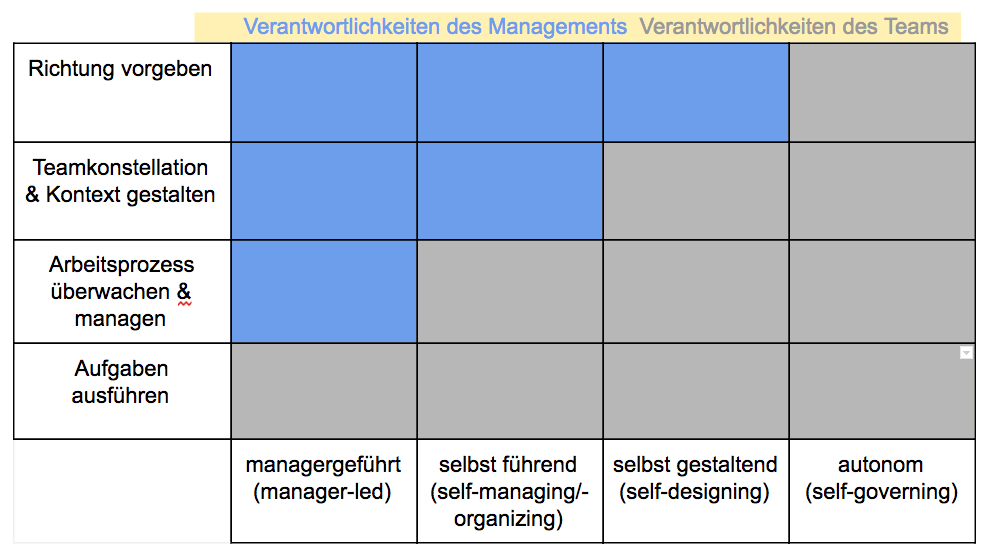| selbst gestaltend | Zusätzlich Autorität über Teamkonstellation & evtl. über Berichtsbeziehungen |
