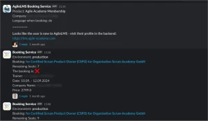 Wir haben außerdem spezielle Channels eingerichtet, die durch Schnittstellenanbindungen automatisch über wichtige Ereignisse wie Buchungen und Feedback informieren. So bleiben unsere Teams jederzeit auf dem aktuellen Stand und können schnell auf Veränderungen reagieren.