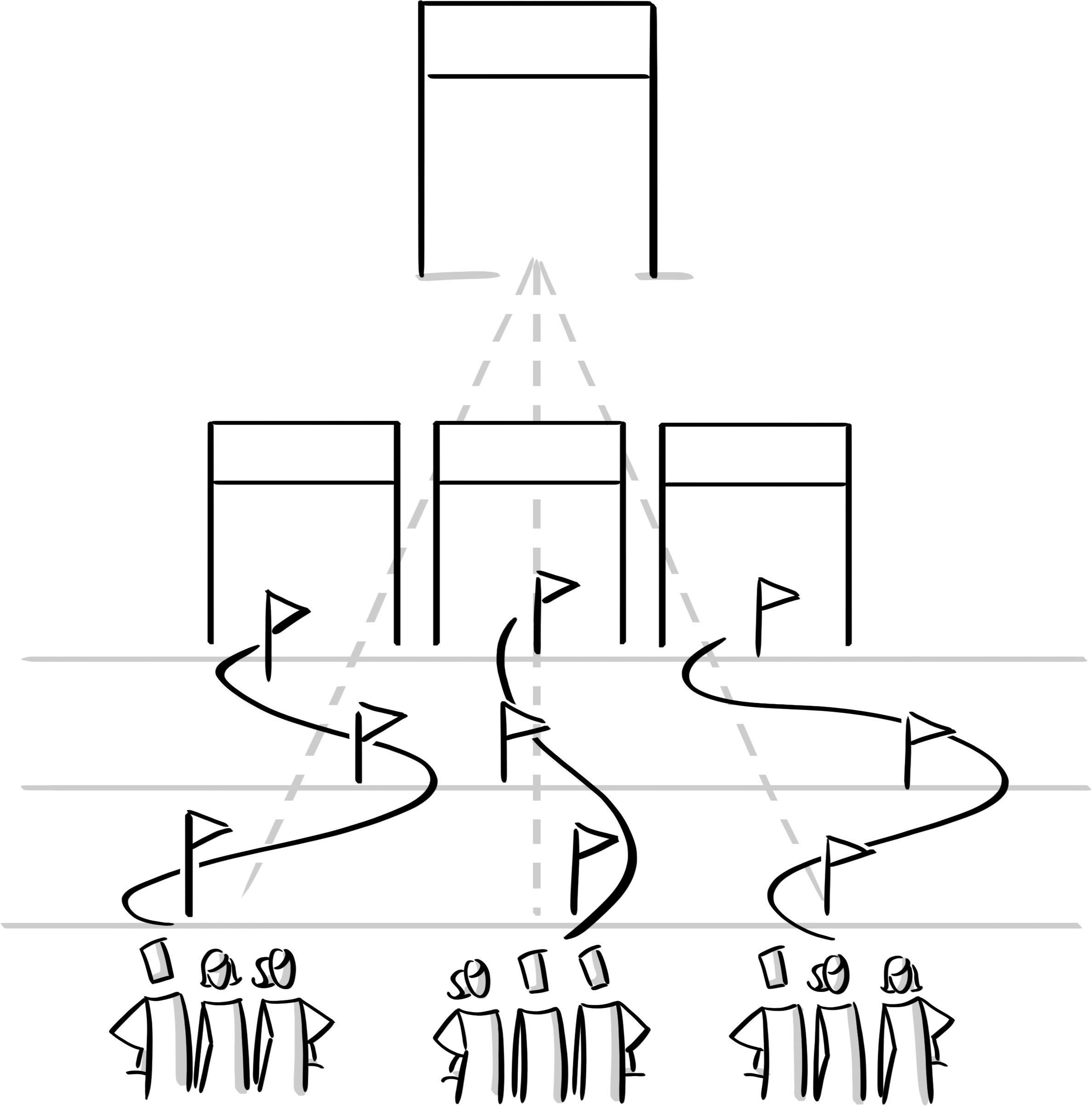 Als einzelner Entwickler konzentriert man sich – berechtigt – auf die eigenen Team-Ziele und das eigene Team-Backlog. Doch: wie sorgt man dafür, dass die Ziele der einzelnen Teams zueinander passen?