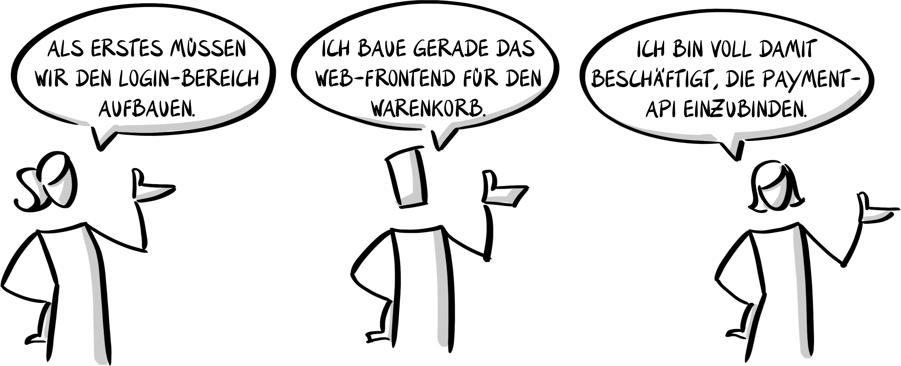 Bei vielen Teams wird auch die Themenvielfalt und Komplexität der Umsetzung sehr schnell größer. Das Problem ist aber eigentlich das gleiche: