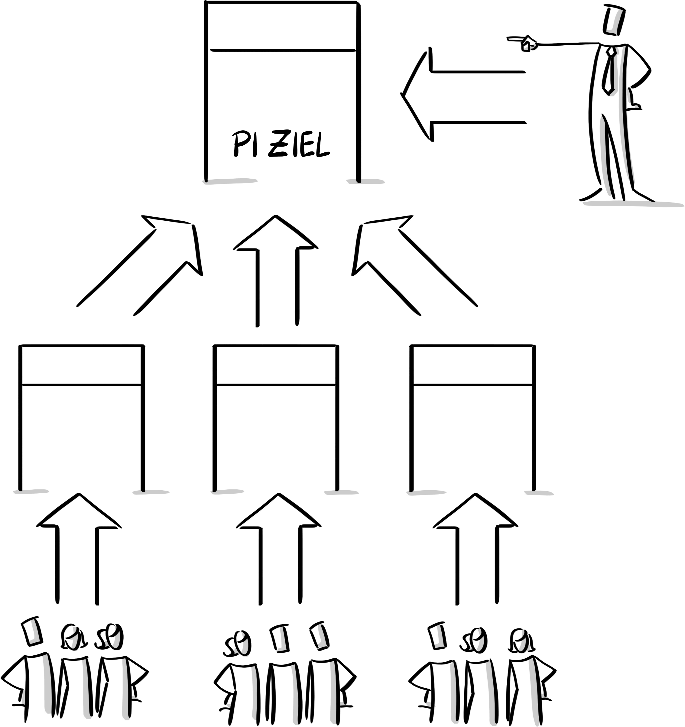 Alle Teams kennen damit ihren Beitrag zum “Großen Ganzen” und bekommen ein klares Verständnis dafür, wohin ihre Reise im nächsten Inkrement geht. Den Grundstein für den wichtigen Dialog der Teams miteinander bildet ein gemeinsames Verständnis, wie die Teamziele in Bezug auf das Gesamtziel und die Ziele der anderen Teams gesteckt sind.
