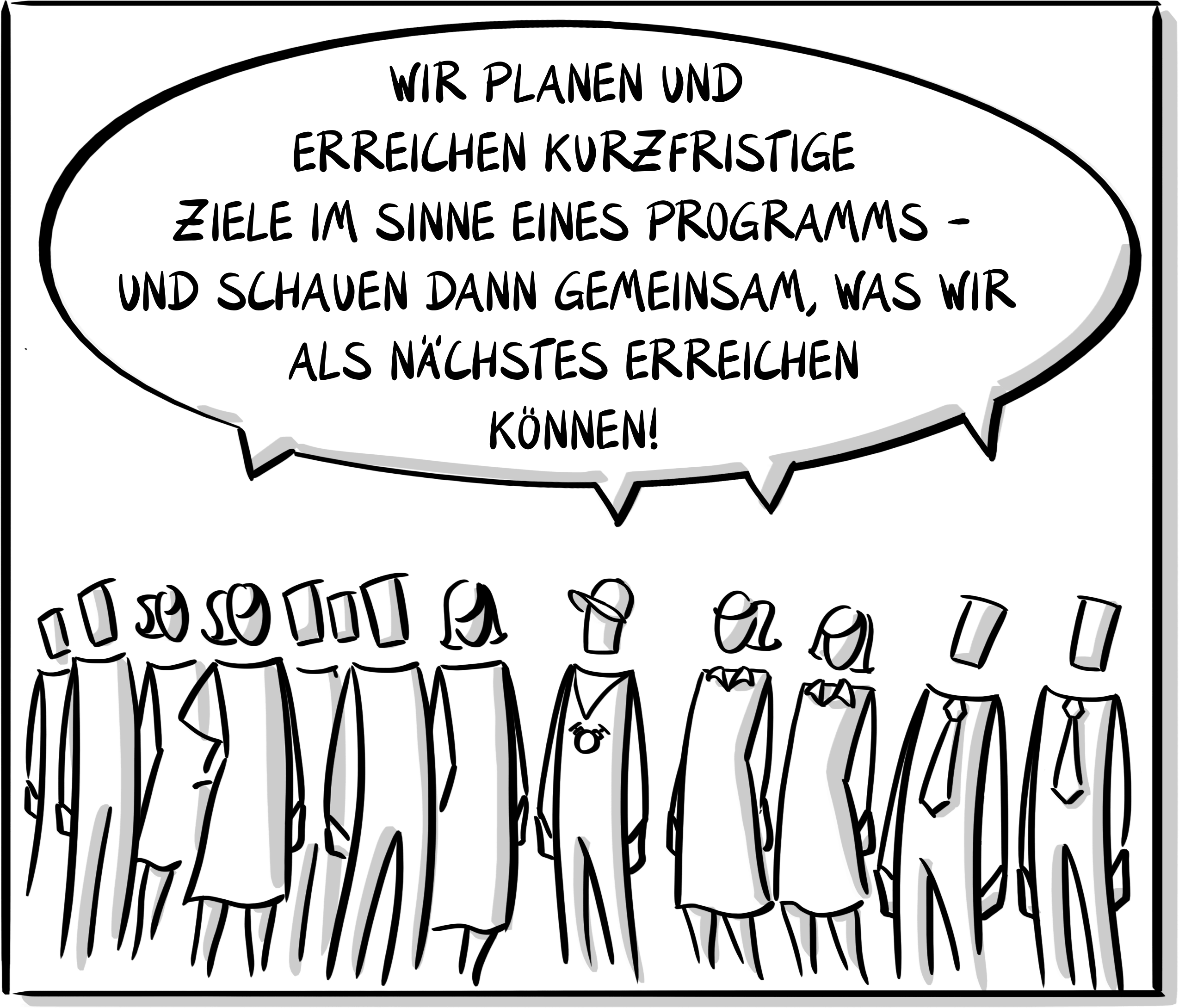 Starker Fokus auf nutzbaren (Teil-)Produkten und Geschäftsergebnissen.